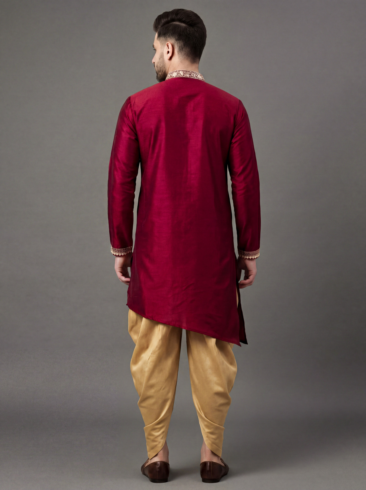 The silk blend fabric offers a soft and breathable touch against the skin, creating a sense of comfort that remains consistent from the beginning of the day to the end of the evening, allowing you to move freely through celebrations and gatherings while maintaining a composed and relaxed presence.